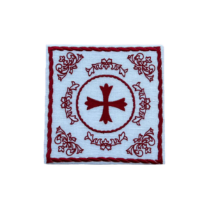 Casulla bordada a mano de raso. Incluye carpeta, velo de cáliz y estola.
